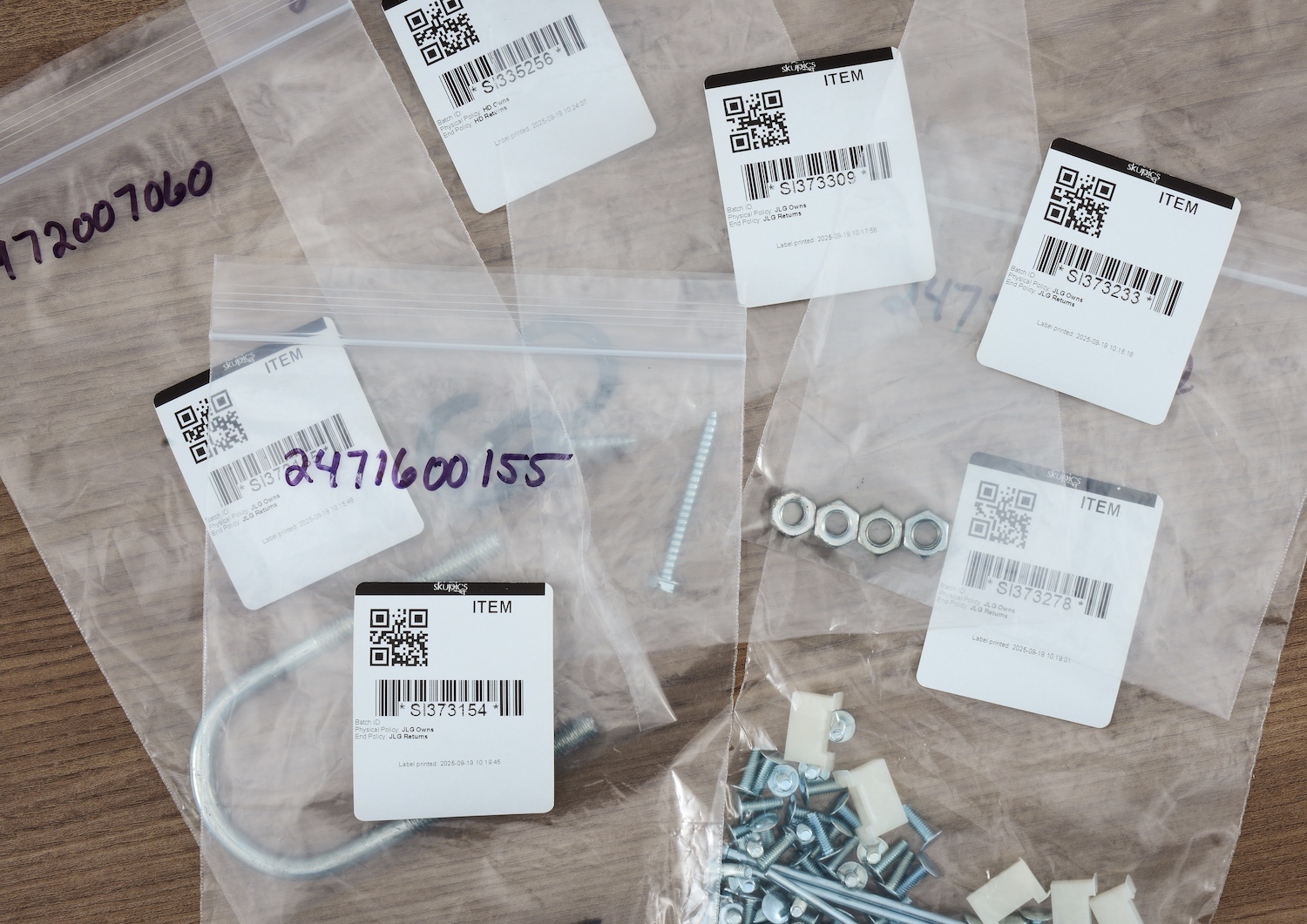 - Zip bags for individual SKUs